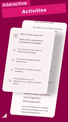 • Structured Content: Learn Developmental Psychology step-by-step, covering childhood, adolescence, adulthood, and aging.