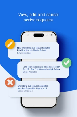The applications app gives you the ability to: - Request a substitute teacher - Edit a request for a substitute teacher - Cancel a request for a substitute teacher - View substitute teacher profiles - And more